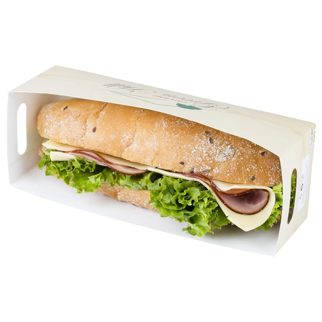 Baguette ljus (VETEMJÖL, vatten, jäst, salt, rapsolja, socker), skinka rökt skivad (skinka(helmuskel), Rökarom, lake bestående av: vatten salt, antioxidansmedel (E325,E316), druvsocker, stabiliseringsmedel E451, konserveringsmedel E250), gouda ost (MJÖLK, salt, syrningskultur, vegetabilisk ystenzym), lätta (vatten, vegetabilisk olja (raps, solros), kokosolja, modifierad stärkelse, salt, emulgeringsmedel (mono och diglycerider av fettsyror, lecitin), beredning av bondböna, konserveringsmedel (kaliumsorbat), surhetsreglerande medel (mjölksyra), naturlig arom, vitamin A och D), krispsallad. Baguette med skinka & ost ljus 16% Ost, 20% Skinka.