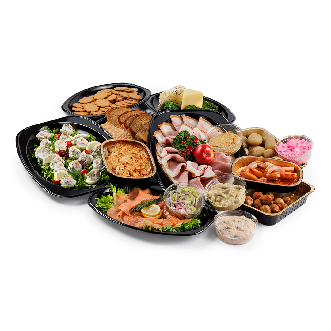 Kulpotatis med skal, griljerad julskinka (julskinka (skinka, vatten, salt, druvsocker, antioxidationsmedel (E331, E301), konserveringsmedel (E250)), skånsk senap (vatten, gula SENAPsfrö, socker, ättiksprit, salt, kryddor), ströbröd (VETEMJÖL, vatten, salt, jäst), äggula flytande (ÄGGULA, vatten, konserveringsmedel (kaliumsorbat), surhetsreglerande medel (citronsyra)), socker.), köttbullar 14g (gris och nötkött, vatten, lök, potatis, potatismjöl, salt, potatisfiber, kryddor), janssons frestelse (janssons frestelse (potatis, sås (vatten, SKUMMJÖLK, rapsolja,GRÄDDE, ÄGGULA, salt, socker, OSTPULVER, modifierad majsstärkelse, aromer, dextros, stabiliseringsmedel: guarkärnmjöl och difosfater), kryddor, lökpulver, vitlökspulver)), Ansjoviskryddade SILLfiléer, grädde (KÄRNMJÖLK, vegetabiliska oljor (fullhärdad palm, kokos), modifierad majsstärkelse, emulgeringsmedel (sackarosestar av fettsyror, mono- och diglycerider av fettsyror, SOJALECITIN), KÄRNMJÖLKSPULVER, förtjockningsmedel (guargummi, fruktkärnmjöl)), vatten, ströbröd (VETEMJÖL, vatten, salt, jäst), socker, salt, ättika, kryddor, konserveringsmedel (E211).), kokt ägg (ÄGG, vatten, salt, syra (citronsyra)), prinskorv (griskött, vatten, potatismjöl, salt, kryddor, stabiliseringsmedel (E450), glukossirap, surhetsreglerande medel (E262), buljong, antioxidationsmedel (E300, E301), kryddextrakt, konserveringsmedel (E250), naturtarm (av får), rökt), rödbetsallad (majonnäs green hill (rapsolja, vatten, ÄGGULA, socker, salt, ättika, SENAPSFRÖ, chili, konserveringsmedel (E202, E211,E270), förtjockningsmedel (E412, E415)), rödbeta tärnad (rödbetor, vatten, socker, ättika, salt, konserveringsmedel (natriumbensoat, kaliumsorbat)), salt (salt, klumpförebyggandemedel (E535)).), saltsillfile (SILLFILÉ), inlagd sill m picklad lök 2023 (inlagd sill – grund 2023 ( saltsillfile (SILLFILÉ), vatten, socker, ättiksprit (ättiksprit, syrahalt 10%), rödlök, kryddpeppar, vitpeppar, lagerblad.), rödlök, vatten, socker, ättiksprit, salt.), kallrökt lax (LAX, salt), vörtbröd (VETEMJÖL, vatten, FULLKORNSRÅGMJÖL, sirap, russin, VÖRT AV KORN, jäst, RÅGSKÅLLNING, rapsolja, salt, ingefära, pomeransskal, kanel, kryddnejlika, socker), vatten, skagenröra (majonnäs green hill (rapsolja, vatten, ÄGGULA, socker, salt, ättika, SENAPSFRÖ, chili, konserveringsmedel (E202, E211,E270), förtjockningsmedel (E412, E415)), färskskalade räkor (skalade RÄKOR (Pandalus borealis), vatten, salt, surhetsreglerande medel citronsyra, konserveringsmedel (E202, E211), Fiskad i Nordostatlanten FAO27, 27.I.b med bottentrål), philadelphia laktosfri (MJÖLK, GRÄDDE, salt, stabiliseringsmedel (fruktkärnmjöl), bakteriekultur), dill, citron pressad (citronjuice från koncentrat, konserveringsmedel (E224 innehåller SULFIT)), salt (salt, klumpförebyggandemedel (E535)).), socker, skånsk senap (vatten, gula SENAPsfrö, socker, ättiksprit, salt, kryddor), cheddar (pastöriserad MJÖLK, salt, syrningskultur, löpe, konserveringsmedel (E251, E202, E235)), saint agur (pastöriserad KOMJÖLK, löpe, salt, mjölksyrabakterier, pencillium Roqueforti ), majonnäs green hill (rapsolja, vatten, ÄGGULA, socker, salt, ättika, SENAPSFRÖ, chili, konserveringsmedel (E202, E211,E270), förtjockningsmedel (E412, E415)), pepparkakor (VETEMJÖL, socker, vegetabilisk olja (palm, kokos, raps), sirap, salt, kardemumma, bakpulver (natriumbikarbonat), arom, Kan innehålla spår av MANDEL), julknäcke (VETEMJÖL, jäst, socker, rapsolja, salt, fänkål, anis, koriander, Kan innehålla spår av MJÖLK), creme fraiche laktosfri (pastöriserad GRÄDDE, modifierad majsstärkelse, förtjockningsmedel (guarkärnmjöl, fruktkärnmjöl och pektin), syrningskultur), ättiksprit (ättiksprit, syrahalt 10%), smör (pastöriserad GRÄDDE, mjölksyrakultur), creme fraiche (högpastöriserad GRÄDDE, mjölksyrakultur), rapsolja, salt (salt, klumpförebyggandemedel (E535)), purjolök, spenat, rödvinsvinäger, rödlök, persilja färsk, dill, tomatpuré (koncentrerad tomatjuice), sweet chilisås thai (socker, vatten, ättika, röd chilipeppar, vitlök, modifierad stärkelse, salt, förtjockningsmedel (E415), paprika), persilja, dragonblad vinäger (dragonblad, vinäger, vatten), kryddpeppar, vitpeppar, lagerblad, SULFIT.