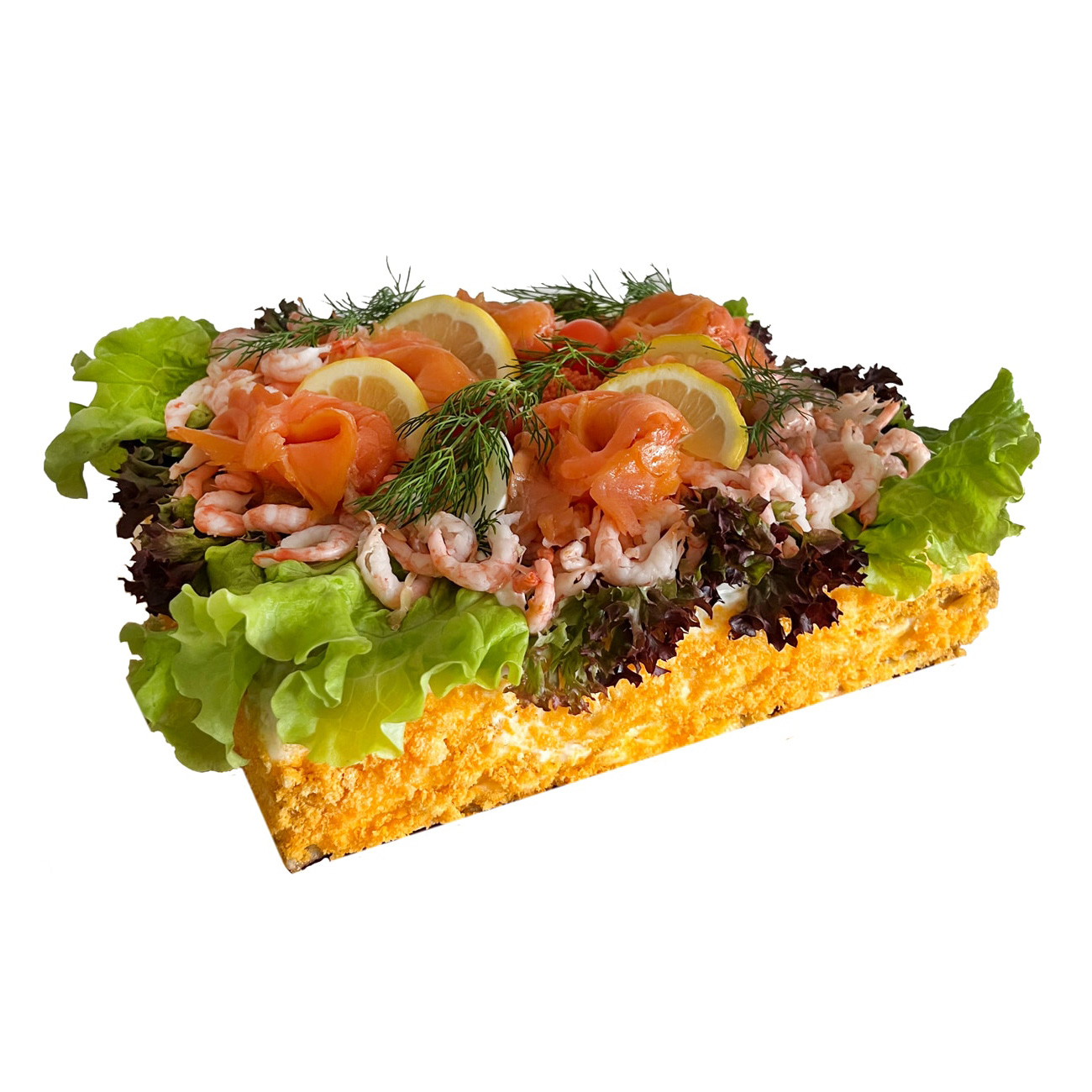 Påsksmörgåstårta 350 g  12% Räkor, 8% Lax.