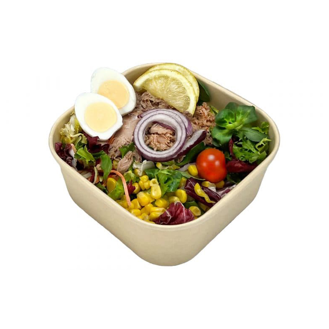 Salladsmix (frissesallad, rosesallad), tonfisk (TONFISK (katsuwonus pelamis) (FISK), solrosolja, salt), kokt ägg (ÄGG, vatten, salt, syra (citronsyra)), cocktail tomat, julienne mix (broccoli, morot, rödbetor), citron. Sallad med Tonfisk 31% Sallad, 31% Tonfisk.