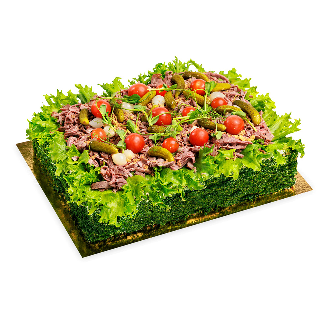 Ingrediensförteckning: Rostbiffsröra tårta (rostbiffröra tårta (majonnäs green hill (rapsolja, vatten, ÄGGULA, socker, salt, ättika, SENAPSFRÖ, chili, konserveringsmedel (E202, E211,E270), förtjockningsmedel (E412, E415)), rostbiff strimlad (nötinnanlår, vatten, salt, druvsocker, kryddor (bl.a paprika, bockhornsklöver), lök, kryddextrakt, naturliga aromer, majsstärkelse, antioxidationsmedel (E301), grönsaksbuljong, köttbuljong (från gris), konserveringsmedel (E250)), pepparrot riven (pepparrot, vatten, rapsolja, salt, antioxidantmedel: citronsyra och NATRIUMMETABISULFIT), persilja, salt (salt, klumpförebyggandemedel (E535)).), gurkröra (majonnäs green hill (rapsolja, vatten, ÄGGULA, socker, salt, ättika, SENAPSFRÖ, chili, konserveringsmedel (E202, E211,E270), förtjockningsmedel (E412, E415)), gurkmix (picklad gurka (gurka, socker, ättika, salt), torkad lök, socker, vatten, ättika, modifierad potatisstärkelse, torkad röd paprika, SENAPSFRÖ, konserveringsmedel (E211, E202), färgämne (E141, E101)), salt (salt, klumpförebyggandemedel (E535)).).), pepparrotsmajjo (majonnäs green hill (rapsolja, vatten, ÄGGULA, socker, salt, ättika, SENAPSFRÖ, chili, konserveringsmedel (E202, E211,E270), förtjockningsmedel (E412, E415)), pepparrot riven (pepparrot, vatten, rapsolja, salt, antioxidantmedel: citronsyra och NATRIUMMETABISULFIT), salt (salt, klumpförebyggandemedel (E535)).), smörgåstårtbotten (VETEMJÖL, vatten, siktat RÅGMJÖL, sirap, rapsolja, salt, jäst, RÅGSURDEG, VETEGLUTEN), smörgåstårtbotten kavring (VETEMJÖL, vatten, svart sirap, RÅGSURDEG, sirap, rapsolja, siktat RÅGMJÖL, maltextrakt (KORNmalt, vatten, VETEmalt), jäst, VETEGLUTEN, salt, kummin, anis), rostbiff strimlad (nötinnanlår, vatten, salt, druvsocker, kryddor (bl.a paprika, bockhornsklöver), lök, kryddextrakt, naturliga aromer, majsstärkelse, antioxidationsmedel (E301), grönsaksbuljong, köttbuljong (från gris), konserveringsmedel (E250)), cocktail tomat, persilja, lollo rosso, cornichons (cornichon, vatten, vinäger, salt, konserveringsmedel: kalciumklorid, socker, dill, lök, röd paprika, vitlök, SENAPSFRÖ, svartpeppar, aromer), syltlök (syltlök, vatten, vinäger, socker, salt, surhetsreglerande medel mjölksyra, konserveringsmedel (natriummtabisulfit), innehåller sulfat), rostad lök (lök, vegetabilisk olja (palm), VETEMJÖL, salt), persilja färsk. Rostbiff 1b 18% Rostbiff. Näringsdeklaration: Per 100 gram Energi 1458 kj (348 kcal), Fett 30 gram, varav mättat fett 2.5 gram, Kolhydrat 13 gram, varav sockerarter 3.8 gram, Protein 5.9 gram, Salt 1.3 gram